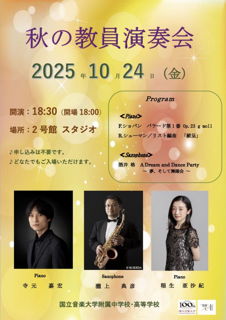 ≪Saxophone≫ 瀧上典彦 piano 稲生亜沙紀 先生