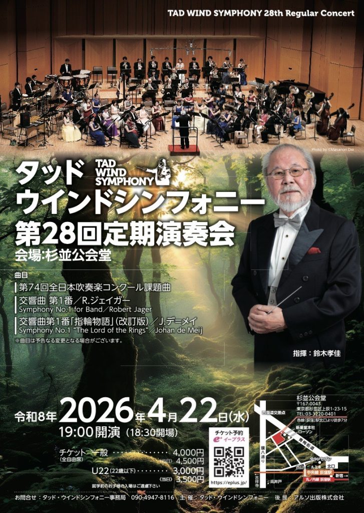 投稿日: 2026年2月12日 投稿者: TakiueNorihiko&QuartetHayateタッドウインドシンフォニー第28回定期演奏会 2026年4月22日(水)19:00開演 杉並公会堂 指揮:鈴木孝佳